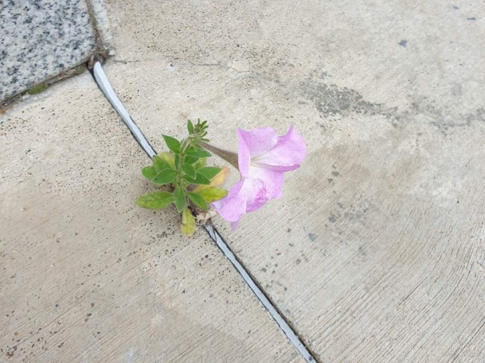 This message was followed by a picture of a tiny flower that had sprung up straight from the concrete.